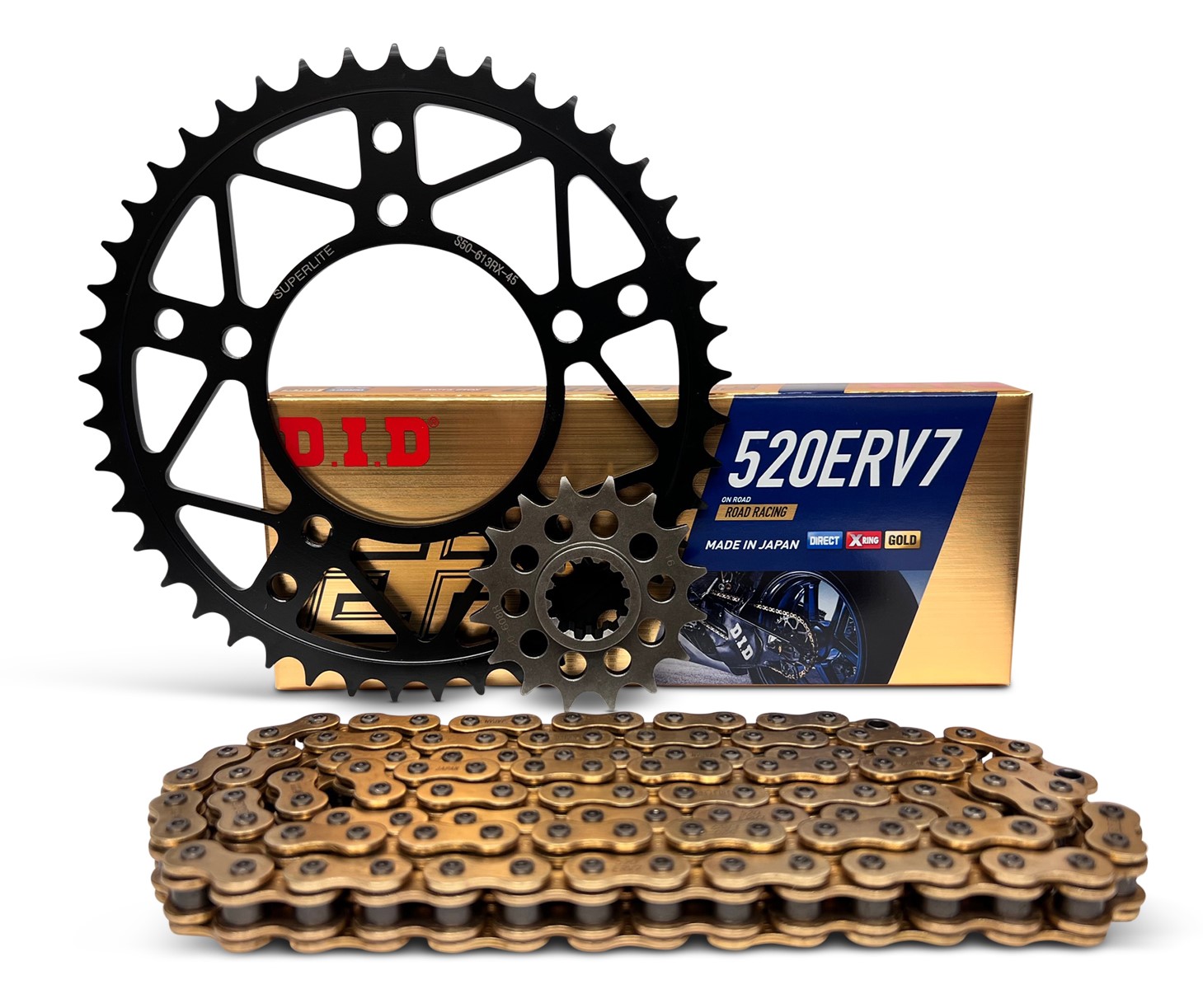 Superlite RSX Series conversion kits shave unsprung "rotating" weight which in turn provides better acceleration, braking and handling. All kits include high quality RSX Series sprockets with multiple gear ratio options and high strength D.I.D. X-Ring sealed chains cut to length. These championship winning sprocket kits are extremely strong and built to last!