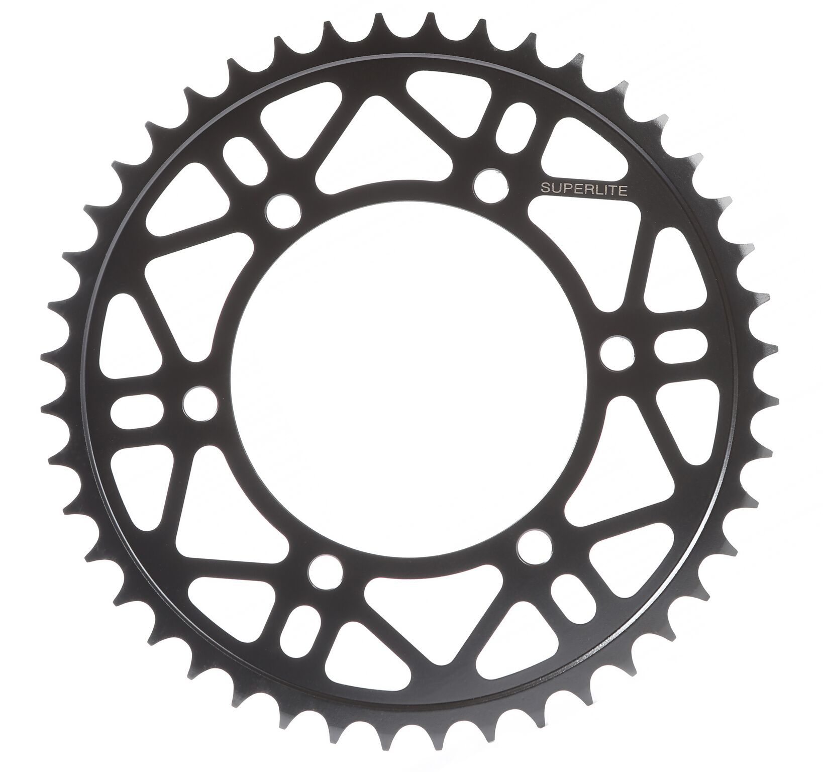The Superlite RS Series rear sprocket is the #1 selling steel racing sprocket on the market today. The unique RSX spoke design offers superior strength with maximum weight reduction making it the lightest and strongest steel sprocket available. All Superlite steel sprockets meet or exceed O.E.M specs, offer a perfect fit and come with a lifetime warranty.