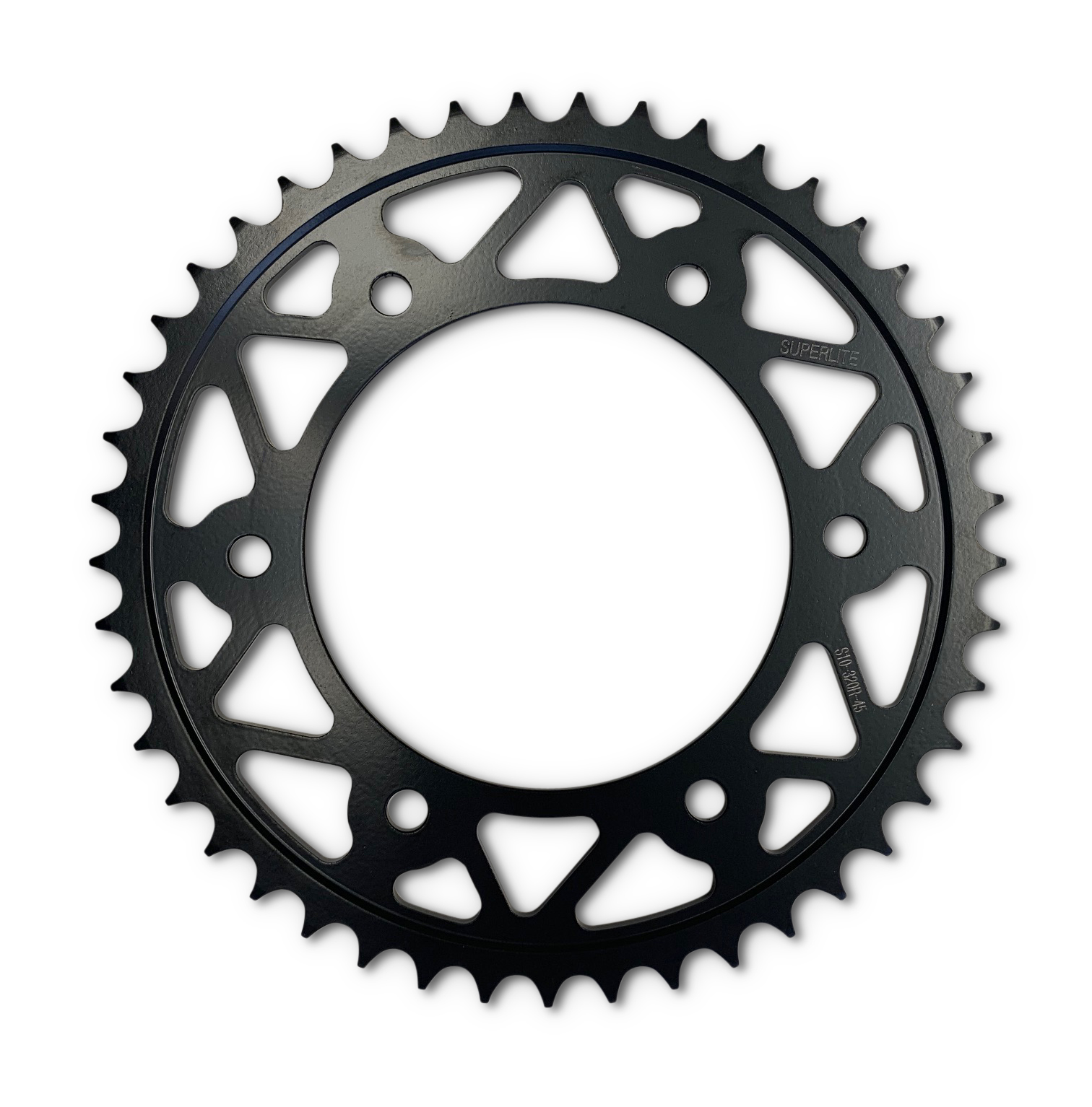 The Superlite RS Series rear sprocket is the #1 selling steel racing sprocket on the market today. The unique RSX spoke design offers superior strength with maximum weight reduction making it the lightest and strongest steel sprocket available. All Superlite steel sprockets meet or exceed O.E.M specs, offer a perfect fit and come with a lifetime warranty.